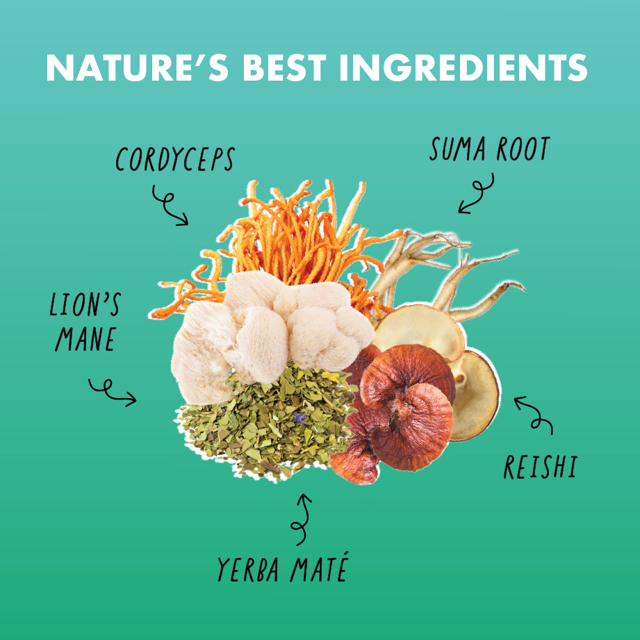 Sustained Energy: Cordyceps, yerba mate, and suma root provide smooth, lasting vitality